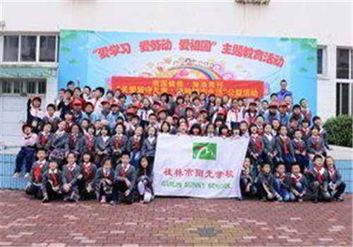 学校以双语教学和“基础+特长”为办学特色,学校开设英语小班教学、口语课程、聘请外教等强化学生英语特长能力和培养,开设舞蹈、乐器校本课程,培养学生综合素质。乐观、自信的“阳光”少年们参加全国、自治区、桂林市举办的奥数、奥英、作文、美术、书法、体育、歌舞、围棋等竞赛活动当中,学生有近六千人次获奖。